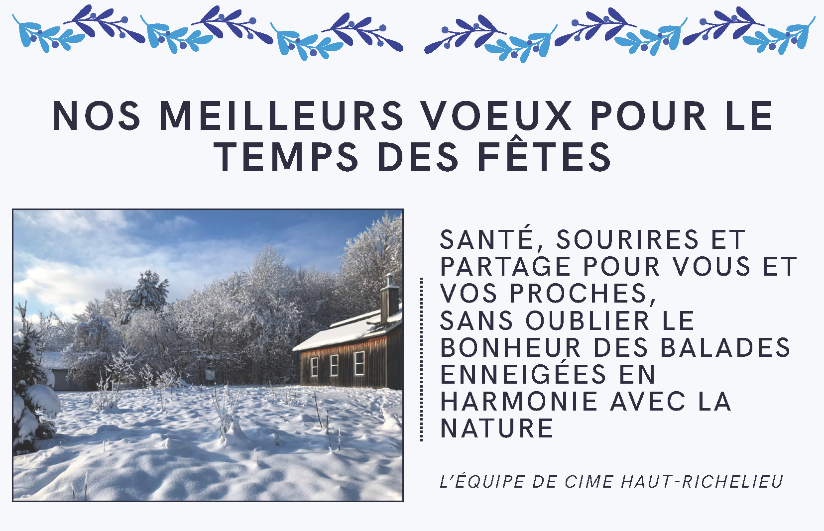 Le site est réservé à la randonnée pédestre et aux activités éducatives supervisées par le personnel de CIME. Vous devez demeurer dans les sentiers balisés en tout temps et ne pas élargir la piste, peu importe la condition des sentiers.